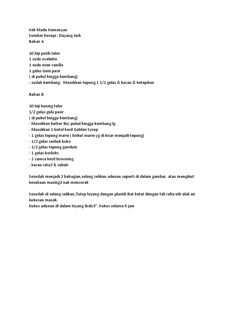 Kek Kukus Madu Simple Myresipi